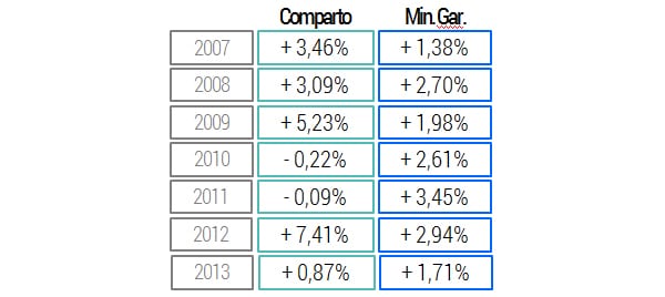 Nella tabella qui sotto invece riepiloghiamo il rendimento ottenuto dal comparto dall’anno del suo avvio alla fine del 2013.